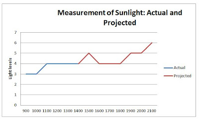 | Table 1: Actual sunlight measured and projected sunlight for the rest of today |